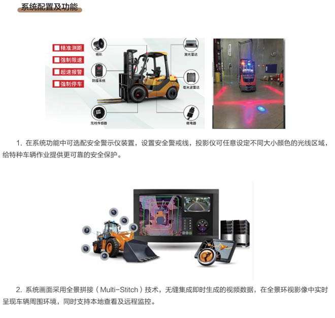 1.基于360°全景環(huán)視監(jiān)控技術(shù),任意設(shè)定警戒區(qū)域、危險(xiǎn)區(qū)域大小及形狀,無死角保護(hù)車輛設(shè)備駕駛作業(yè)安全,最大偵測(cè)范圍4-5米,防撞距離掃描達(dá)20米以上,安裝投影儀可設(shè)置警戒線,投影光線在地面形成一個(gè)安全范圍